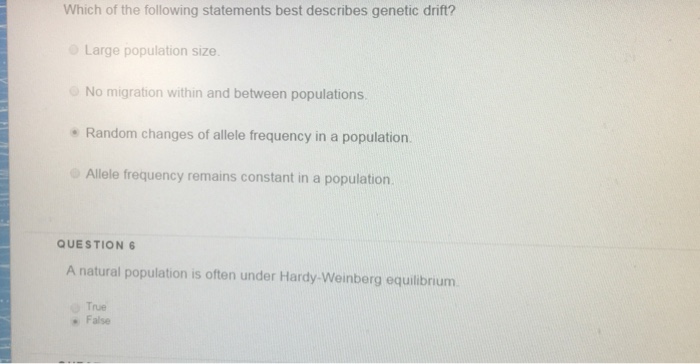Solved Which Of The Following Statements Best Describes Genetic Drift Large Population Size No Migration Within And Between Populations Random Changes Of Allele Frequency In Population Allele Frequency Rerains Constant In Population Auestion
